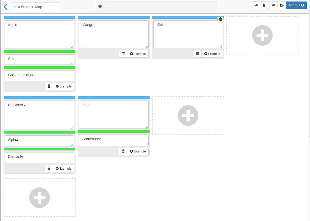 As mentioned this is phase one. We have not yet implemented the ability to drag Examples, or Questions, although we have spiked these and no they are possible! Please try out drag and drop Example Maps and let us know what you think on Twitter @TeamUpLabs.